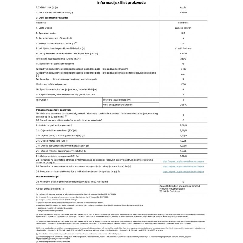 Dodatno: Ultra Wideband (UWB) podrška (gen2 čip), Hitni SOS, Poruke i Find My putem satelita